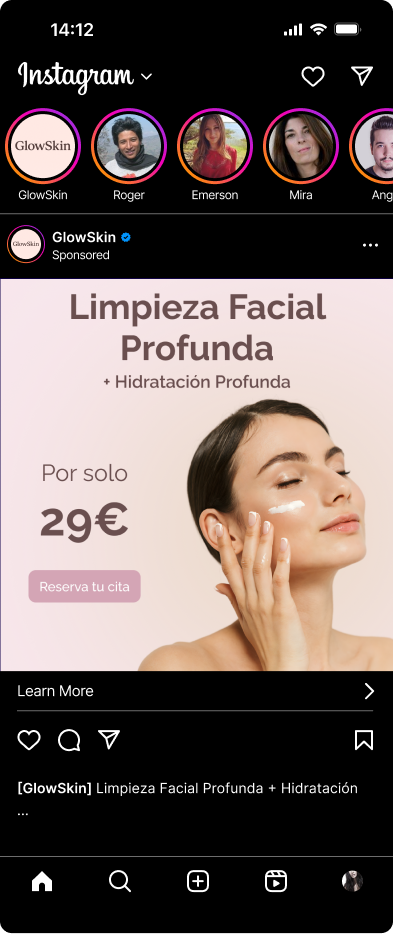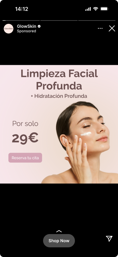 GlowSkin Studio is a beauty center in Barcelona specializing in premium facial treatments. Their goal was to increase the flow of new clients for their star treatment: Deep facial cleansing + advanced hydration.