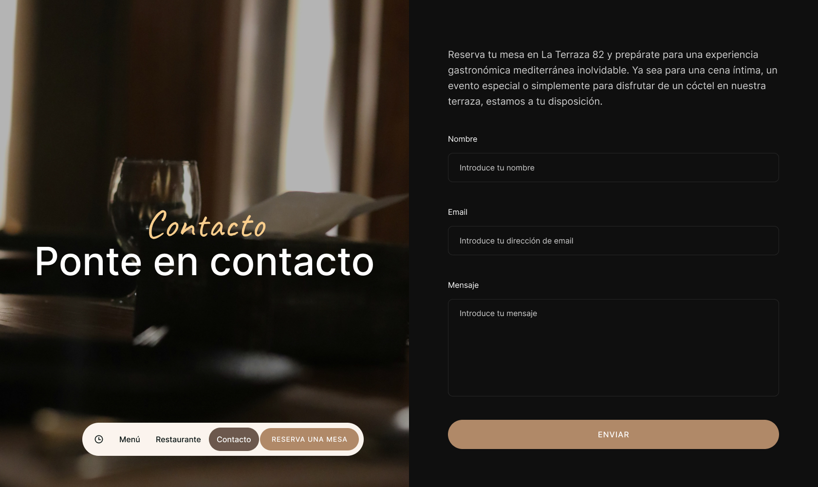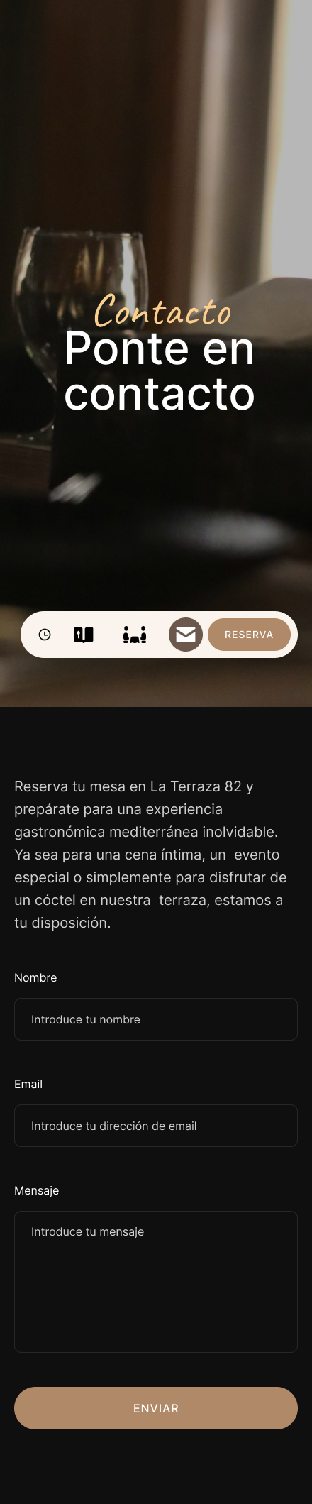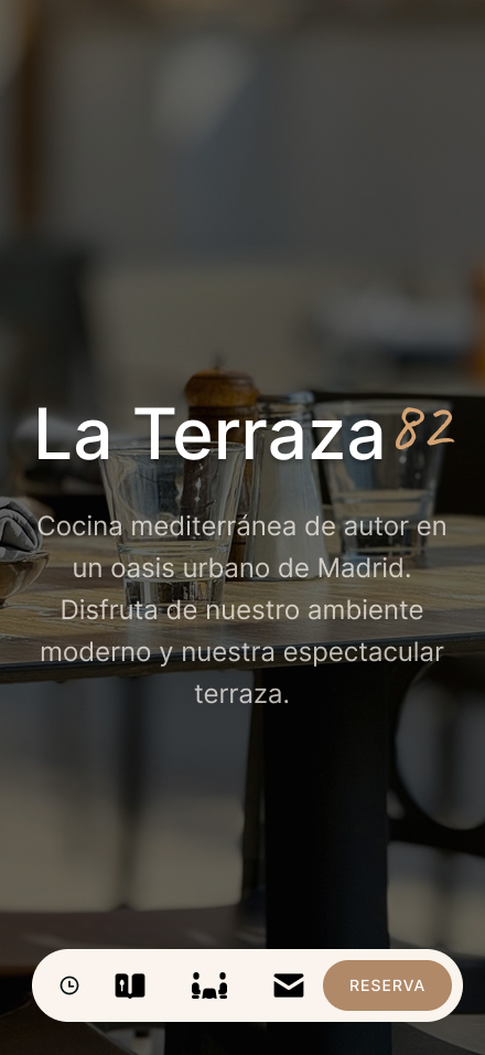 Terraza 82 is a Mediterranean restaurant located in Madrid, known for its modern atmosphere and outdoor terrace. The business needed a website that reflected its current aesthetic and facilitated reservations from mobile and desktop.
